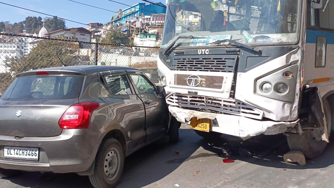 मसूरी। मसूरी में रोडवेज की एक बस के ब्रेक फेल होने से उसने तीन कारों को टक्कर मार दी। इस कारण सड़क के दोनों ओर वाहनों का लंबा जाम लग गया। लोगों को भारी परेशानियों का सामना करना पड़ा। करीब 2 घंटे के बाद बस को सड़क से हटाकर यातायात को सुचारू किया गया। बताया जा रहा है कि सुबह के समय उत्तराखंड रोडवेज की बस दिल्ली से मसूरी करीब 5 बजे आई थी।