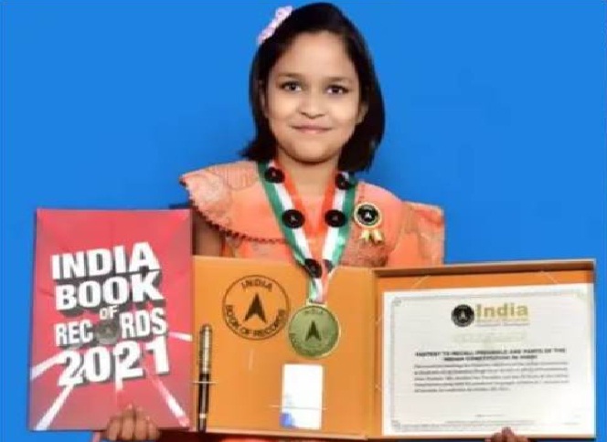 नैनीताल l उत्तराखंड की होनहार बिटिया दक्षिणा सिंह का नाम इंडिया बुक ऑफ रिकॉर्ड में दर्ज हुआ है। वास्तव में इस बेटी ने कमाल कर दिया। उन्होंने भारत में सबसे कम समय में भारत के संविधान की प्रस्तावना, संविधान के कुल 22 अनुच्छेद एवं समस्त 22 भाषाओं को बोलने का रिकॉर्ड बनाया है। दक्षिणा ने संविधान की प्रस्तावना, 22 अनुच्छेद और समस्त 22 भाषाओं को बोलने में सिर्फ 1 मिनट 22 सेकेंड का समय लिया। इस शानदार उपलब्धि के लिए नन्हीं दक्षिणा का नाम इंडिया बुक ऑफ रिकॉर्ड में दर्ज हुआ है।
