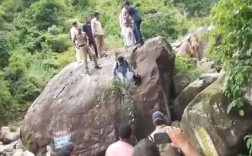 पूर्व मुख्यमंत्री त्रिवेंद्र सिंह रावत बुधवार को दुगड्डा के बीच पौड़ी से कोटद्वार की ओर आ रहे थे. इसी दौरान त्रिवेंद्र सिंह रावत के काफिले समेत लोगों को हाथी ने रोक दिया. हाथी के नजदीक आने पर पूर्व सीएम समेत सभी लोगों को अपना वाहन छोड़कर पहाड़ पर चढ़ना पड़ गया. उन्होंने चट्टान पर चढ़कर जान बचाई. करीब आधा घंटे की मशक्कत के बाद वन कर्मियों ने हवाई फायर कर किसी प्रकार हाथी को रास्ते से खदेड़ा.